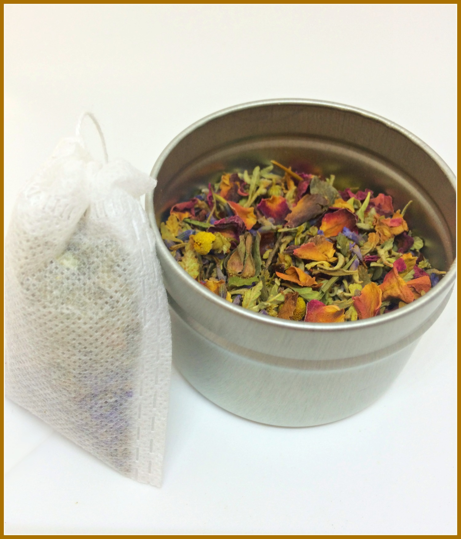 I offer two sizes, 4 oz. of loose leaf tea blend or 12 tea bags with a floral slide box for storage, which is great to use for tea bags or accessories